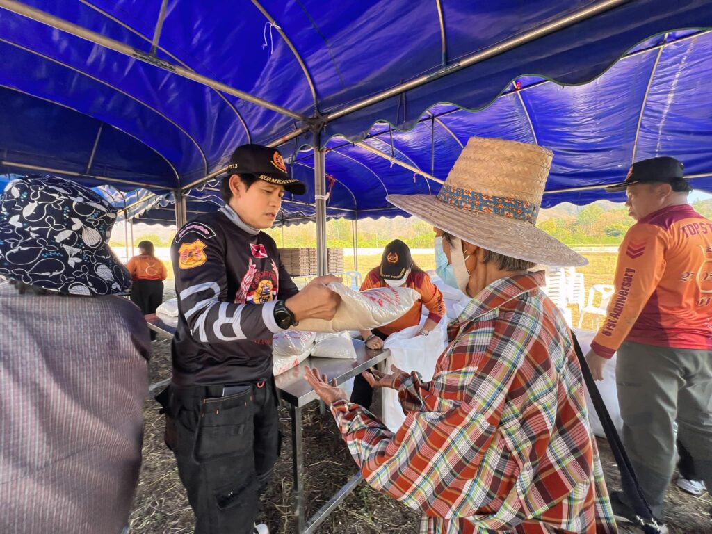 คุณบิณฑ์ คุณเอกพันธ์ บรรลือฤทธิ์,น้องทับทิม อัญริน ธีราธนันพัฒน์ พร้อมคุณแม่,คุณเกศรา บรรลือฤทธิ์ และอาสามูลนิธิร่วมกตัญญู มาแจกสิ่งของอุปโภคบริโภค เช่น ไข่ไก่ จำนวน 1,000 แผง ข้าวสารมูลนิธิร่วมกตัญญู จำนวน 1,000 ถุง ถุงละ5กิโลกรัม ขนมแจกเด็กๆ และเงินจำนวน 200 บาทต่อครัวเรือน แจกเงินเด็กอีกคนละ 100 บาท