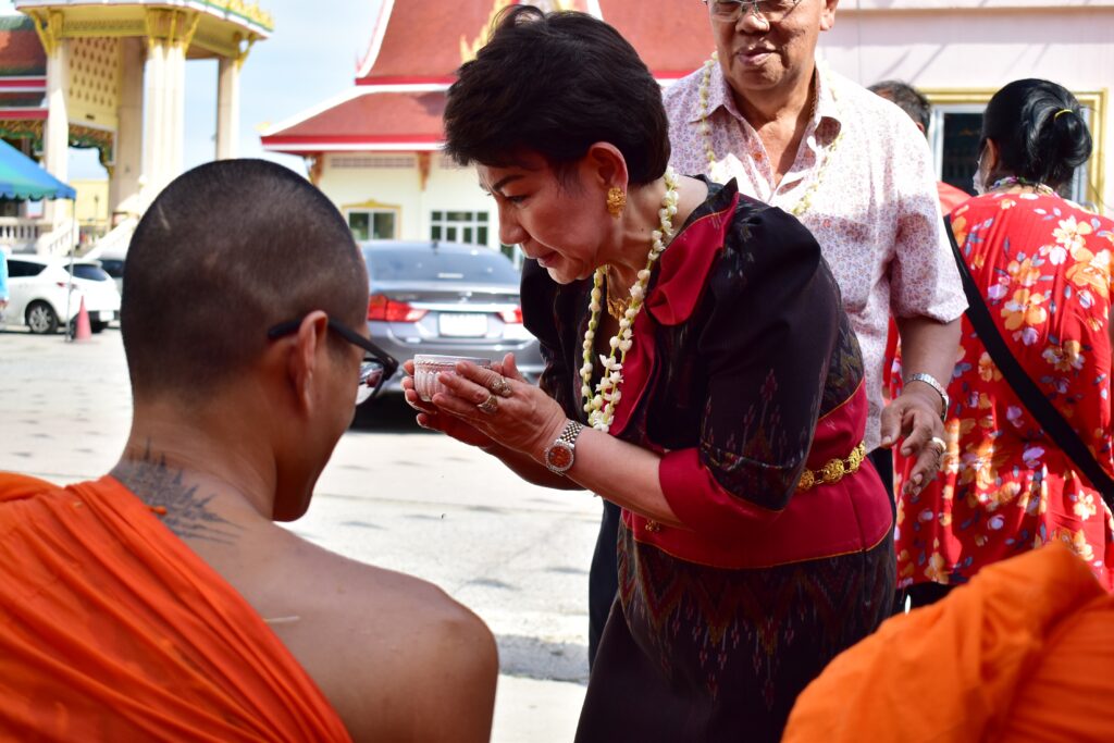 หลังจากนั้น เป็นพิธีบูชาท้าวเวสสุวรรณ พิธีสรงน้ำพระพุทธรูปจำลอง สรงน้ำขอพรพระภิกษุสงฆ์-สามเณร จากนั้น เป็นพิธีทักษิณานุปทาน ทำบุญอุทิศส่วนกุศลให้แก่พระครูสุนทรธรรมวงศ์ อดีตเจ้าคณะตำบลปากน้ำ อดีตเจ้าอาวาสวัดมหาวงษ์ โดยมีพระเถรานุเถระ จำนวน 10 รูป พิจารณาผ้าบังสุกุล พร้อมถวายภัตตาหารเพลแด่พระสงฆ์ โดยได้รับความเมตตาจากพระธรรมวชิราจารย์ รองเจ้าคณะกรุงเทพมหานคร เจ้าอาวาสวัดสุวรรณรามราชวรวิหาร เป็นประธานฝ่ายสงฆ์ พระครูปลัดจริยวัฒน์ หลวงพี่ตุ๋ย ผู้ช่วยเจ้าอาวาสวัดมหาวงษ์ เป็นประธานดำเนินงาน นำพระภิกษุสงฆ์ จำนวน 10 รูป เจริญพระพุทธมนต์ ฉลองกุฏิสร้างใหม่ ครอบครัวพาณิชย์พิศาล พร้อมครอบครัววรัณวงศ์เจริญ นายธนิตพงษ์-นางทิพย์ประภา วรัณวงศ์เจริญ กลุ่มชมรมโฮบสะพานบุญ แห่งความหวังและศรัทธา และแขกผู้มีเกียรติ ร่วมกันถวายภัตตาหารเพล ถวายจตุปัจจัยไทยธรรม แด่พระสงฆ์ พระสงฆ์ให้ศีล กรวดน้ำ รับพร รองเจ้าคณะกรุงเทพมหานคร ประพรมน้ำพระพุทธมนต์ เพื่อความเป็นสิริมงคล จากนั้นได้ร่วมกันรดน้ำดำหัวขอพร นายอัครนันท์-นางธัญยธรณ์ พาณิชย์พิศาล เนื่องในเทศกาลวันสงกรานต์ ประจำปี 2568
