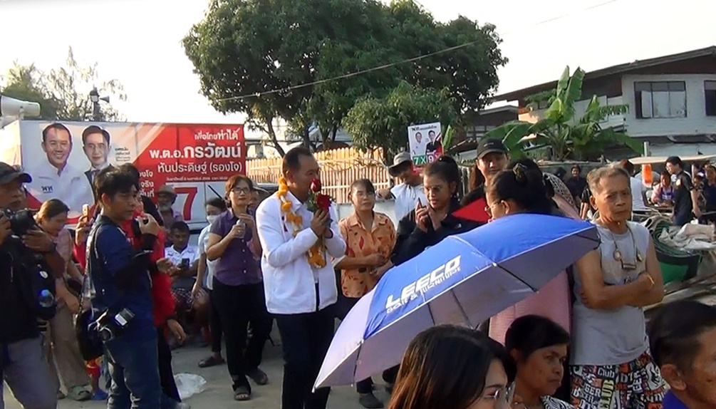 วันที่ 5 กุมภาพันธ์ 2569 เวลา 17.00 น.บรรยากาศการหาเสียงช่วงโค้งสุดท้ายร้อนแรง รองโจ พ.ต.อ.กรวัฒน์ หันประดิษฐ์ ผู้สมัครสมาชิกสภาผู้แทนราษฎร จังหวัดสมุทรปราการ เขต 4 เบอร์ 7 พรรคเพื่อไทย และทีมผู้ช่วยหาเสียง เปิดเวทีปราศรัยย่อยบริเวณชุมชนหลังวัดหนามแดง ตำบลบางแก้ว อำเภอบางพลี จังหวัดสมุทรปราการ นำเสนอนโยบายพรรคอย่างเข้มข้นต่อหน้าพี่น้องประชาชน ชาวตำบลบางแก้ว ท่ามกลางเสียงตอบรับและกำลังใจจากชาวบ้านที่มาร่วมฟังอย่างคึกคัก