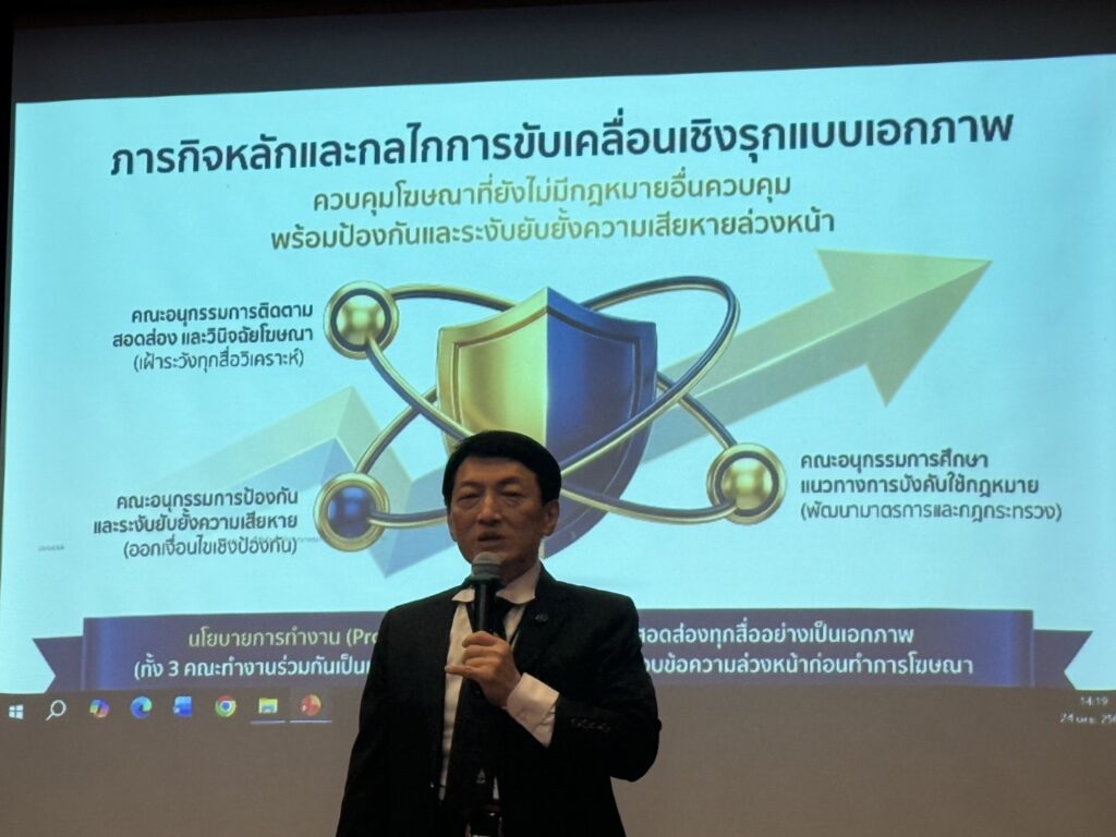 เมื่อวันที่ ๒๔ เมษายน ๒๕๖๙ เวลา ๑๔.๐๐ น ณ. สโมสรทหารบก ถนนวิภาวดีรังสิต กรุงเทพกรุงเทพมหานคร สำนักงานคณะกรรมการคุ้มครองผู้บริโภค (สคบ.) ได้จัดการอบรมหลักสูตร “ นักบริหารด้านกฎหมายคุ้มครองผู้บริโภค ” โดยมีวัตถุประสงค์เพื่อให้ทุกภาคส่วนมีความเข้าใจกฎหมายเกี่ยวกับการคุ้มครองผู้บริโภค กลไกการคุ้มครองผู้บริโภค และกฎหมายอื่นที่เกี่ยวข้องกับการคุ้มครองผู้บริโภคตลอดจนสร้างความตระหนักให้แก่ผู้ประกอบธุรกิจในการปฏิบัติตามกฏหมายเกี่ยวกับการคุ้มครอง ผู้บริโภค ในการนี้ สคบ. ได้เชิญ นายวรเทพ สกุลพิชัยรัตน์ อัยการพิเศษฝ่ายชี้ขาดคดีอัยการสูงสุด ๑. ในฐานะ ประธานกรรมการว่าด้วยโฆษณา สำนักงานคณะกรรมการคุ้มครองผู้บริโภค (สคบ) บรรยายในหัวข้อ “ บทบาท หน้าที่ และกลไกการดำเนินงานคุ้มครองผู้บริโภคด้านโฆษณา ” โดยได้รับความสนใจจาก ผู้เข้ารับการอบรมซักถามปัญหาข้อกฎหมาย เกี่ยวกับการคุ้มครองผู้บริโภคด้านโฆษณา เป็นจำนวนมาก นายวรเทพ ฯ กล่าวว่า การอบรมครั้งนี้จะเป็นประโยชน์แก่ ผู้ประกอบธุรกิจในการปฏิบัติ ให้ถูกต้อง ตามกฎหมายคุ้มครองผู้บริโภคด้านโฆษณา และจะเป็นประโยชน์ แก่ผู้บริโภคที่จะได้รับการคุ้มครอง ไม่ ต้องตกเป็นเหยื่อหลงเชื่อโฆษณาที่ใช้ข้อความที่ไม่เป็นธรรม และก่อให้เกิดความเสียหายแก่ผู่บริโภค